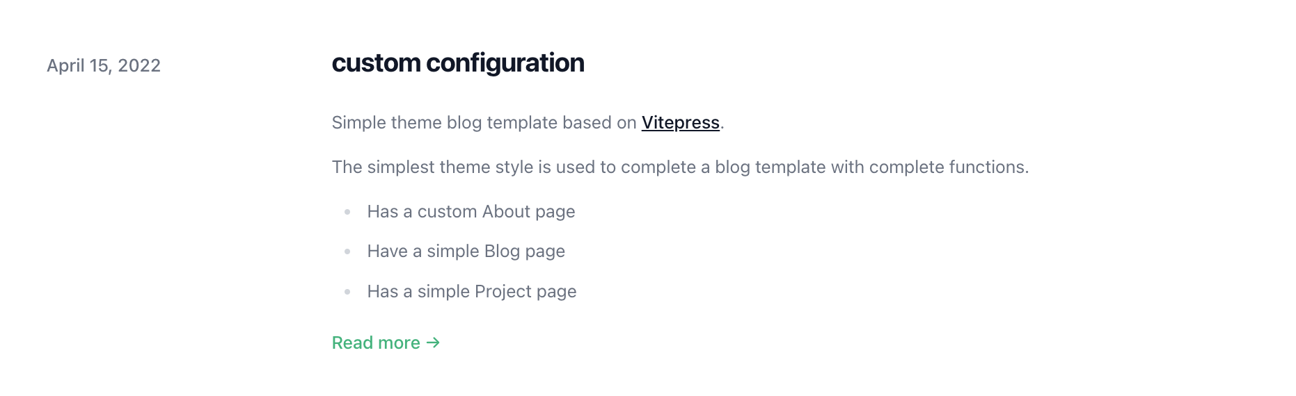 If you need to modify the styles like author and time, you can directly modify .vitepress/theme/Author.vue and .vitepress/theme/Date.vue.